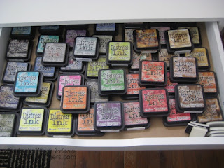 *Added 7/4/2013: My Distress Markers are now located on my "Tim Shelf" with his books - laying down. He mentioned that they should be stored that way to keep the ink in both ends equally distributed. Thank you to Belinda for reminder!